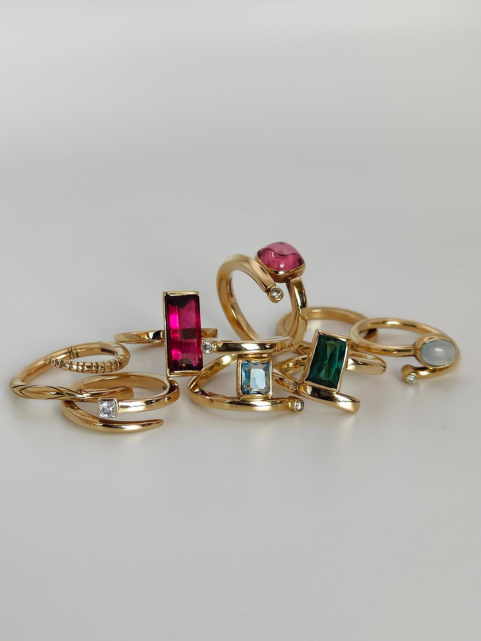 With deep concern for sustainability, and her Gemmology Diploma FGA and Diamond Diploma DGA, you can rest assured in the integrity of the metals and precious stones incorporated into her work.